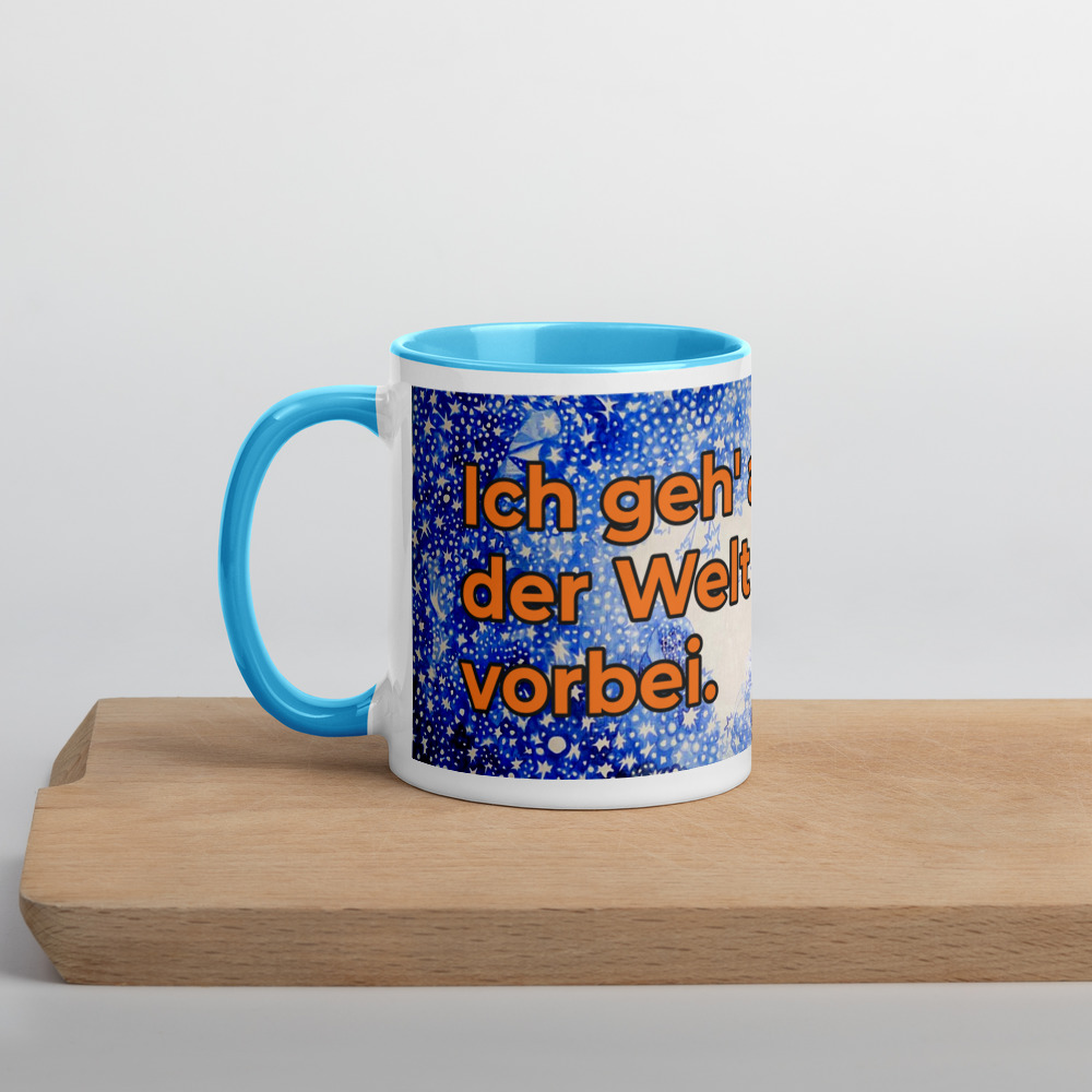 „Ich geh an der Welt vorbei“ Tasse mit farbiger Innenseite (12,95€ inkl. MwSt)